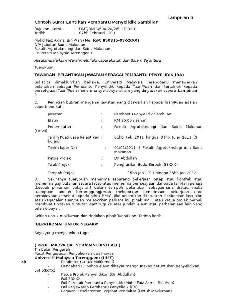 Contoh surat tawaran kerja qomartech engineering lokman toolib academia .